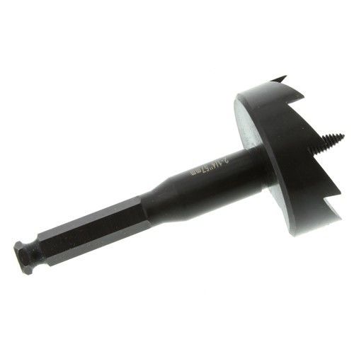 مته فورستنر با تغذیه خودکار از جنس فولاد پر کربن با برش تک و روکش مشکی، طراحی شده برای کاربردهای نجاری حرفه ای.